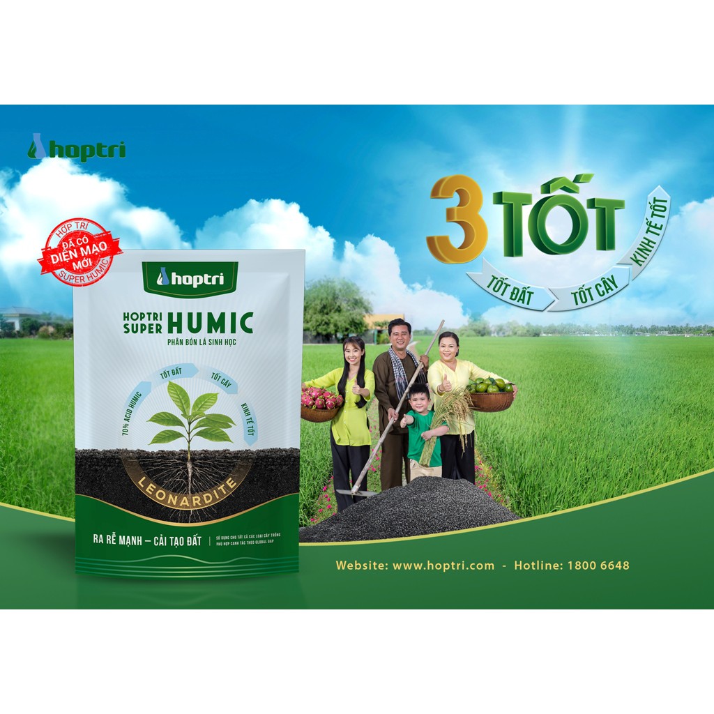 HỢP TRÍ Super-Humic rải hay tưới vào đất có tác dụng: - Kích thích hệ rễ phát triển - Tăng khả năng hấp thu phân bón - Tăng đề kháng - Ít sâu bệnh hại - Giảm thuốc BVTV - Tăng năng suất và chất lượng nông sản.