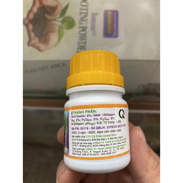 Thành phần: Axit Humic 2%; NAA 1500ppm; Nts 2%; P2O5hh 5%; K2Ohh 3%; B 200ppm, pHH20 6,8; Tỷ trọng 1,09.