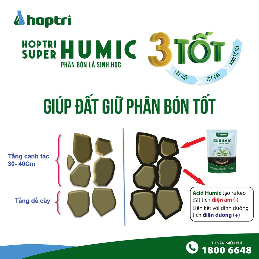 HỢP TRÍ Super Humic dạng hạt cao cấp kích thích cây ra rễ mạnh, tái tạo rễ mới giúp cây nhanh chóng phục hồi, bón gốc hay pha loãng tưới vào đất có tác dụng: giúp cho đất tơi xốp, giữ nước chống hạn, giữ phân bón giúp cây trồng hấp thu dinh dưỡng hiệu quả hơn và tăng cường đề kháng với bệnh hại.