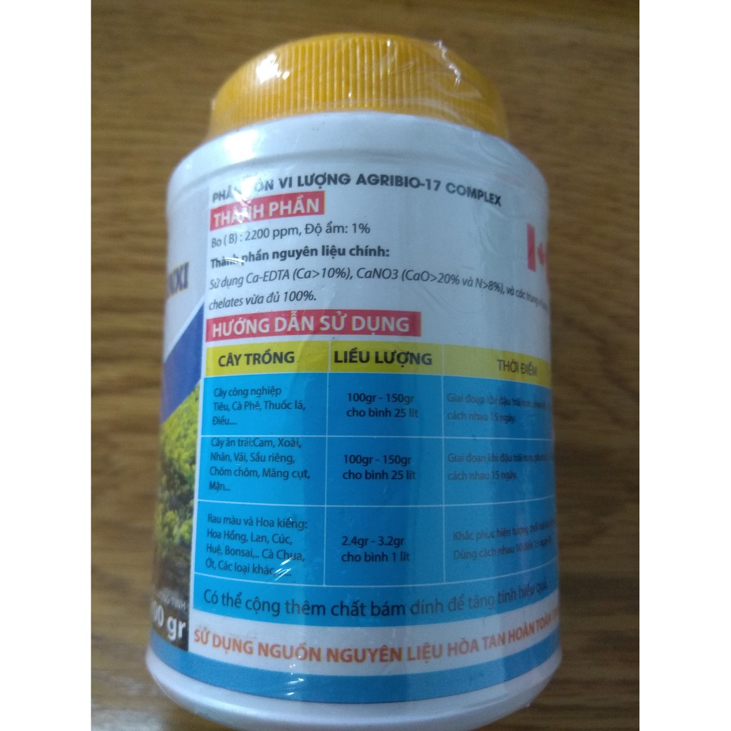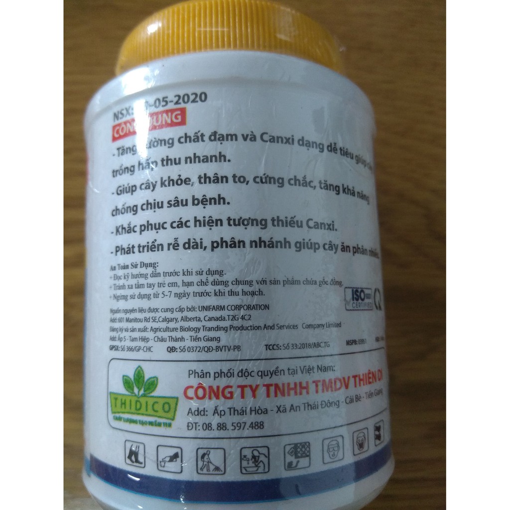 Thành phần nguyên liệu chính: Sử dụng Ca-EDTA (Ca>10%), CaNO3 (CaO>20% và N>8%), và các trung vi lượng chelates vừa đủ 100%.
