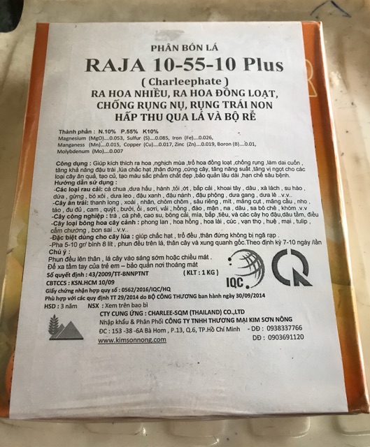 Giới thiệu Phân bón lá Thái Lan Raja 10-55-10 Plus Thái - Hộp 1kg