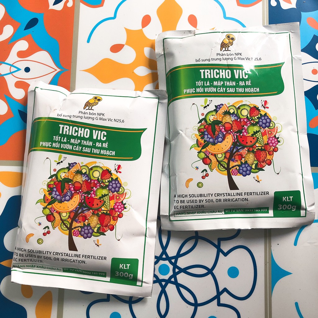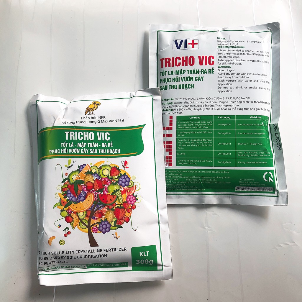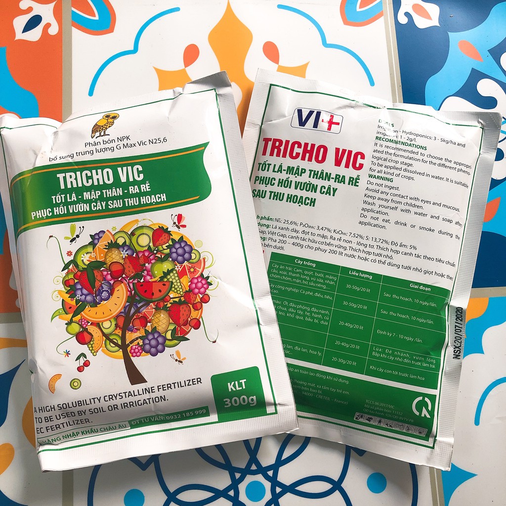 Nhà cửa & Đời sống > Làm vườn > Phân bón || Phân bón lá TRICHO VIC tốt lá mập thân ra rễ NPK 26-3-7+ 10SO3 gói 300grCòn hàng
