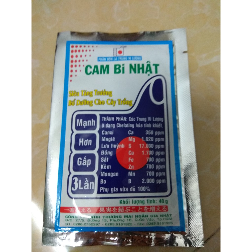 Nhà cửa & Đời sống > Làm vườn > Phân bón || Phân bón lá trung vi lượng CAM Bi Nhật tăng trưởng bổ dưỡng cho cây trồng - gói 40 gramCòn hàng