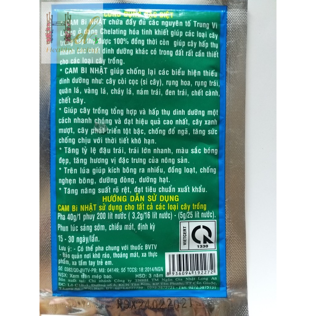 + Cam Bi Nhật chứa đầy đủ các nguyên tố trung vi lượng ở dạng chelating hoá tính khiết giúp cây trồng hấp thụ được 100% đông thời cong giúp cây hấp thụ nhanh các chất dinh dưỡng khác có trong đất rất cần thiết cho các loại cây trồng.