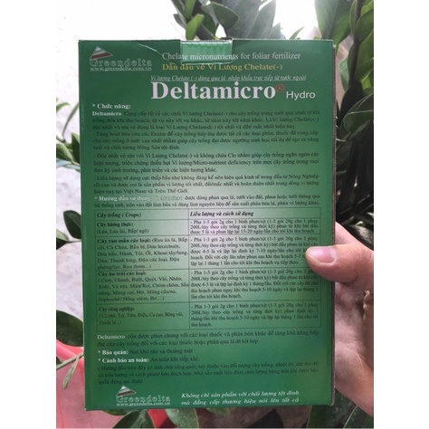 🍀 Phân bón lá Deltamicro Hydro là phân bón vi lượng Chelate (-) dạng bột dùng qua lá có xuất xứ từ Thái Lan.🍀 Thành phần: