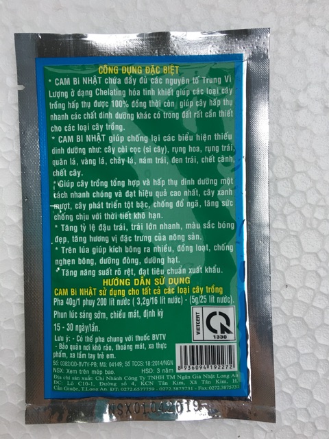 » CAM BI NHẬT 308 giúp chống lại các biểu hiện thiếu dinh dưỡng như:cây cói cọc (si cây ),rụng hoa,rụng trái,quăn lá,vàng lá,cháy lá,nám trái,đen trái,chết cành,chết cây.