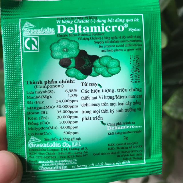 ✳️Deltamicro là phân bón qua lá và qua hệ thống tưới cho tất cả các loại cây trồng✳️Thành phần ;s 6.98%; mg 1.8%* fe 54.000ppm*Mn 50.000ppm; B 30.000ppm;cu 3000ppm; Mo 4000ppm; co 500ppm