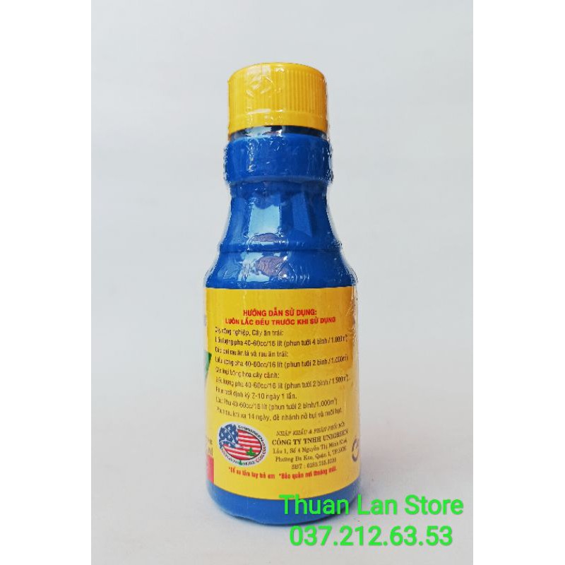 Pha 20 ml cho 1 bình xịt 16 lít nước. Phun đều lên trên và dưới mặt lá, phun vào rễ và các giá thể. Phun định kí 5-7 ngày/1lần. Riêng đối với các loại hoa kiểng, pha 20 ml cho bình xịt 16 lít nước. Phun định kì 15 ngày/1 lần.