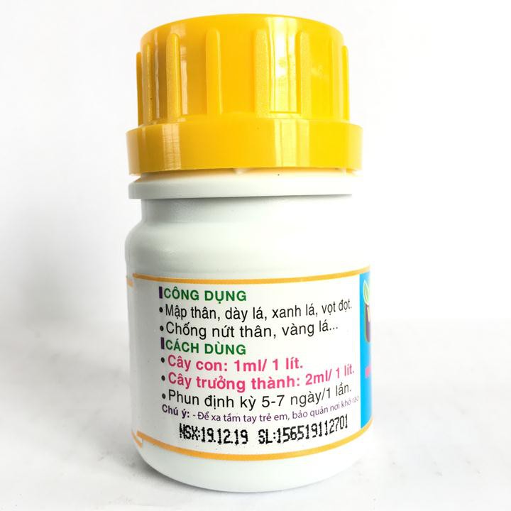 Nhà cửa & Đời sống > Làm vườn > Phân bón || Phân bón lá VK. HUMAT 2-5-3 + TE chai 50ml giúp cây trồng Mập thân, dày lá, Vọt đọt. Chống nứt thân, vàng lá.Còn hàng
