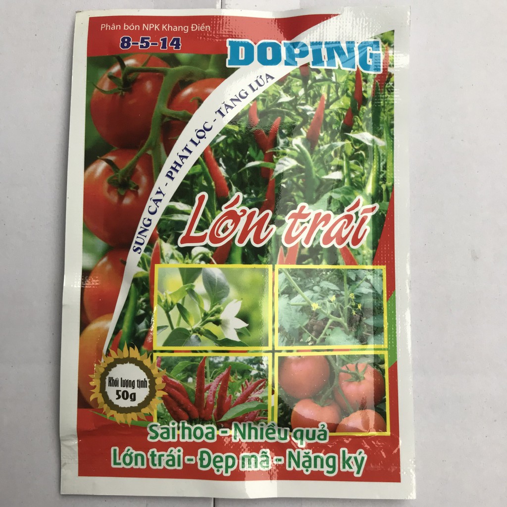 Pha gói 50g Dping vói 20-40 lít nước vào thời kỳ ớt,cà chua phát triển thân lá, ra hoa, đậu trái non, thúc trái nhanh lớn