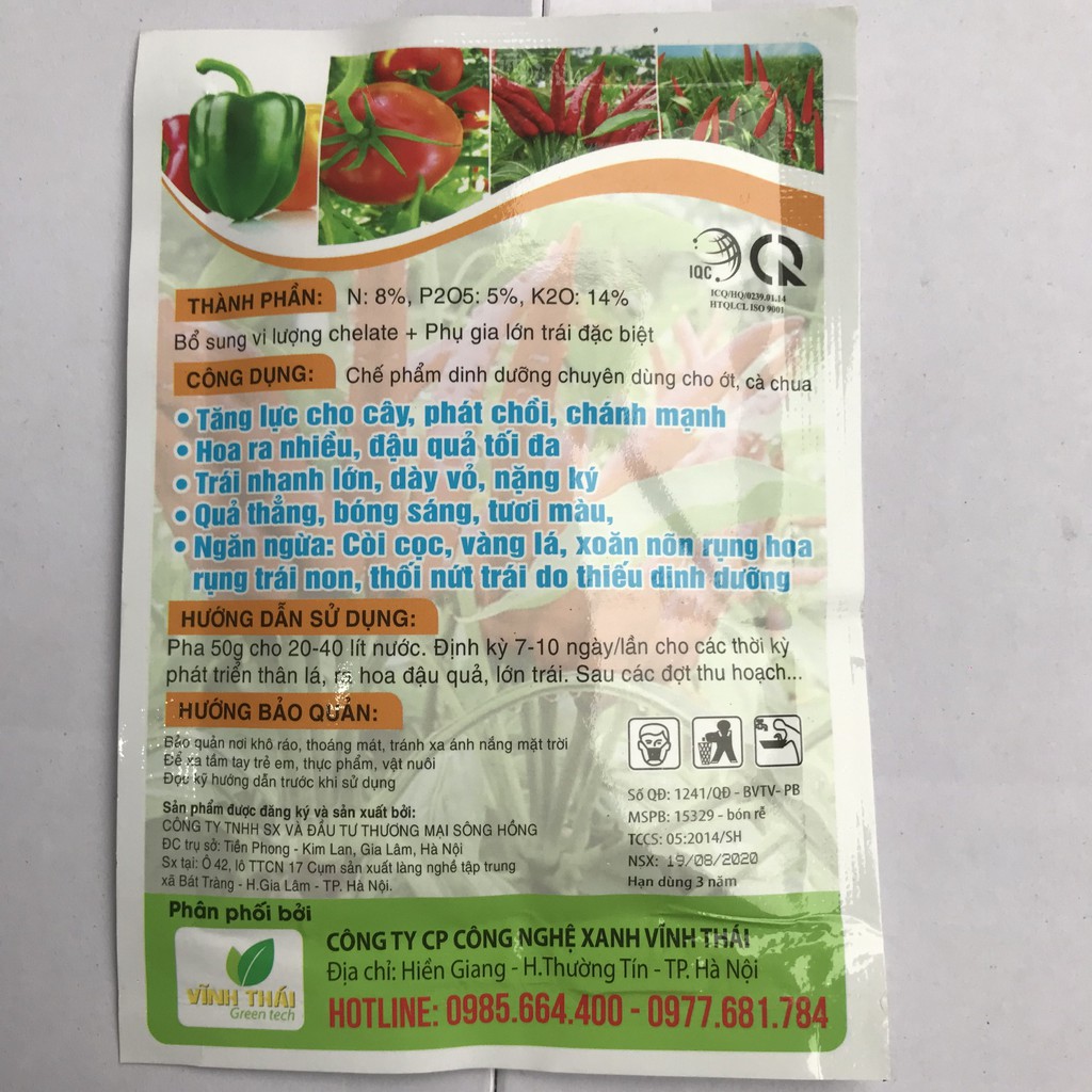 Phân bón chuyên dùng cho cà chua, ớt*Thành phần: