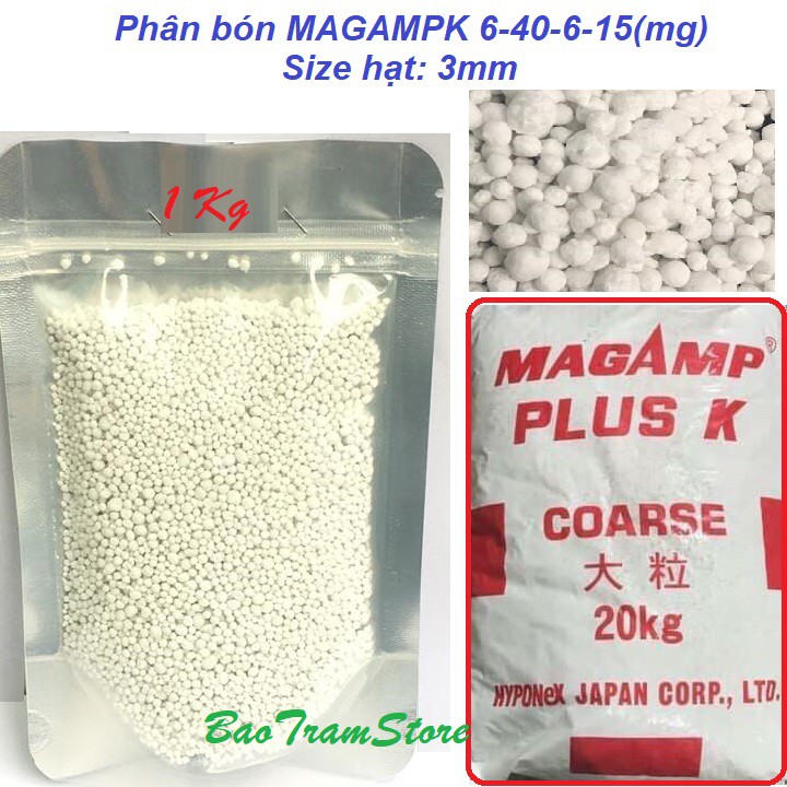 Phân bón MagampK 6-40-6-15 Nhật Bản hạt trắng kích thước 3mm gói 1kg( Đây là sản phẩm shop nhập bao 20kg về chia nhỏ ra các túi nhỏ cho người sử dụng có nhu cầu ít. Đảm bảo 100% chất lượng của nhà sản xuất)
