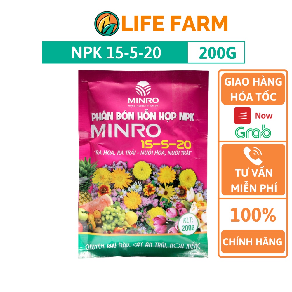 Phân Bón MINRO Kích Ra Hoa, Ra Trái 15-5-20- Gói 200G (PMR-004)
