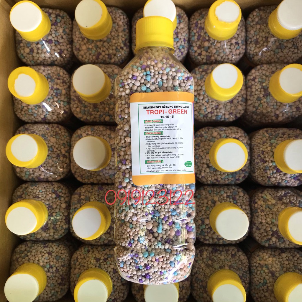 Phân bón NPK 15 + 15 +15 hoăc 16-16-16 dùng cho cây cảnh và hoa chai 500g