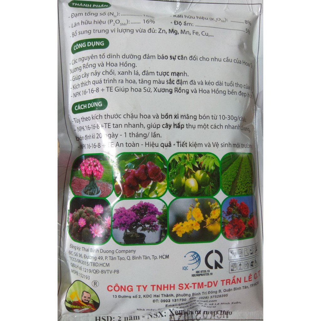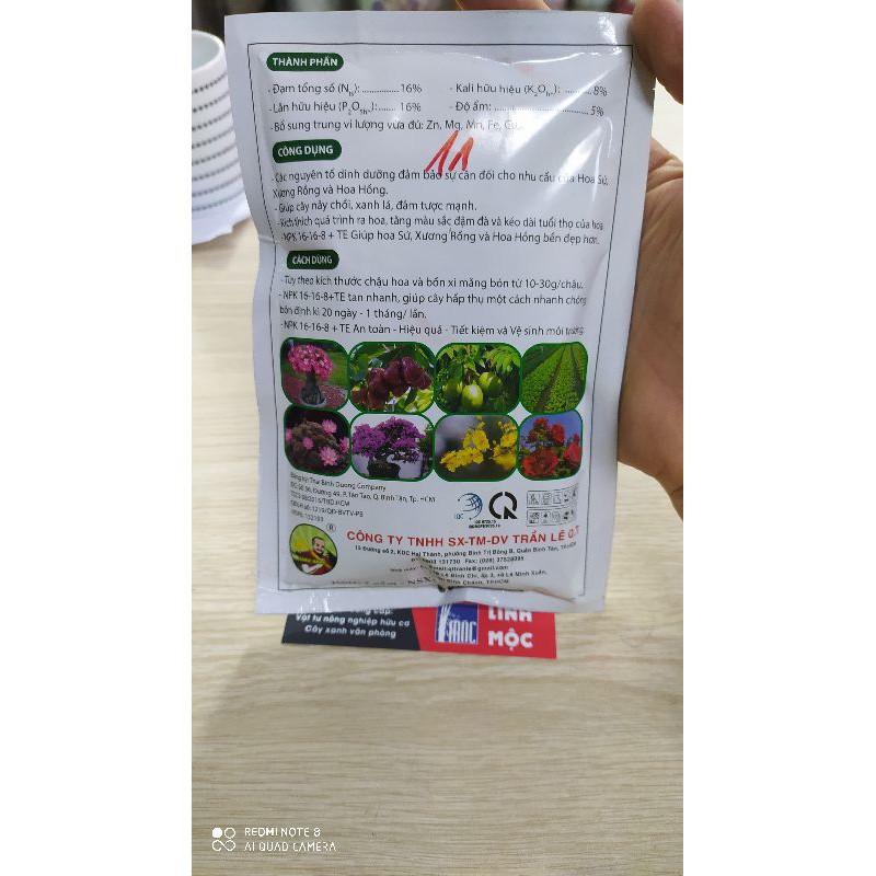 Phân bón NPK 16-16-8 + TE cho hoa hồng, sứ, xương rồng... cây hoa cảnh khácXuất xứ: Việt Nam