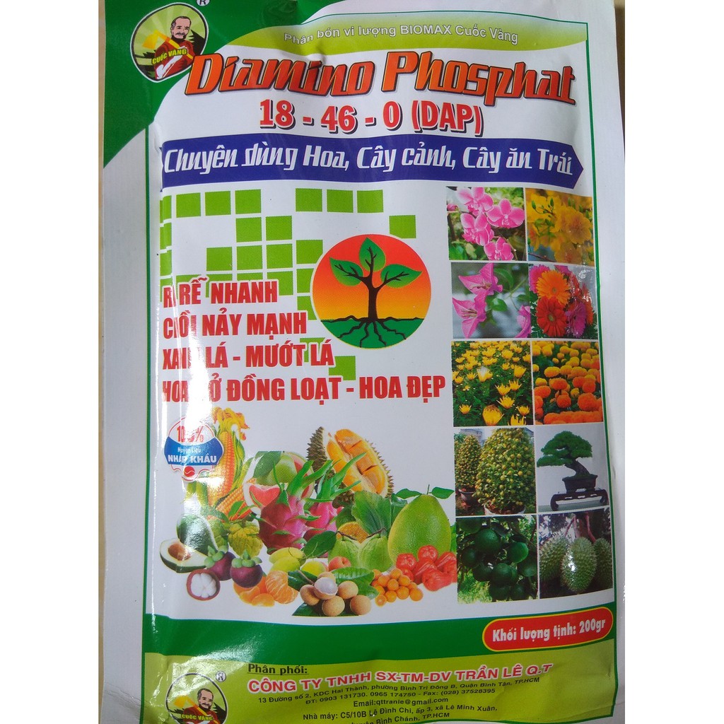 Nhà cửa & Đời sống > Làm vườn > Phân bón || Phân bón NPK 18-46-0-DAP chuyên dùng hoa, cây cảnh, cây ăn trái - gói 200 gram BIOMAXCòn hàng