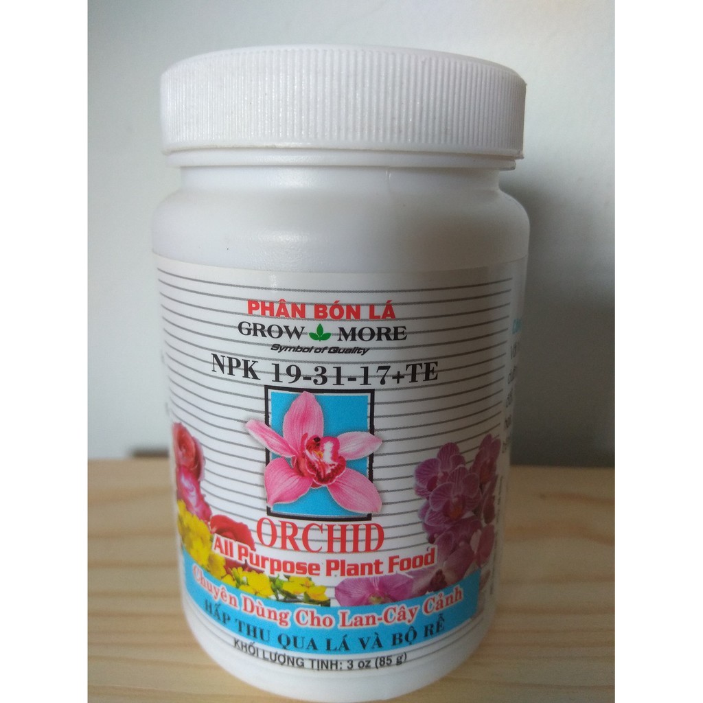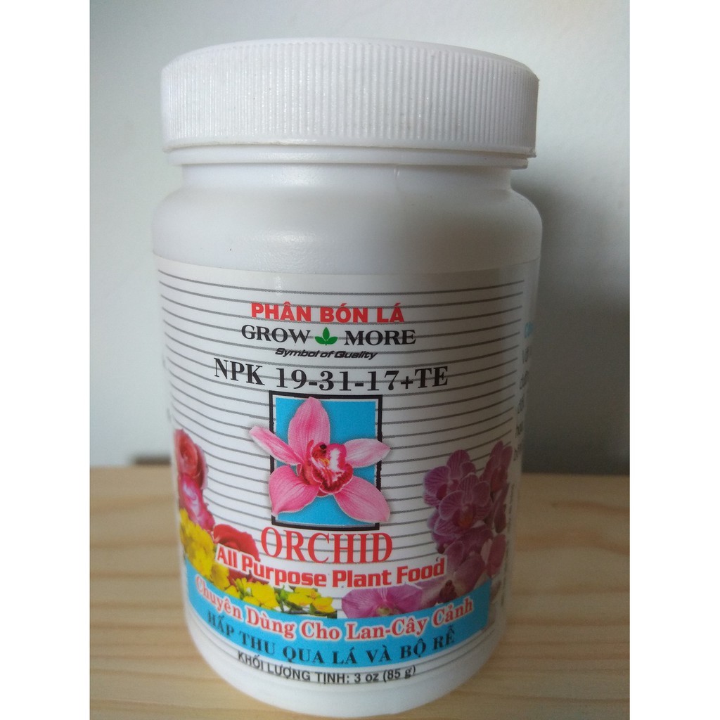 Phân bón NPK 19-31-17 +TE Grow More chuyên dùng cho hoa lan, cây cảnh - chai 85 gram