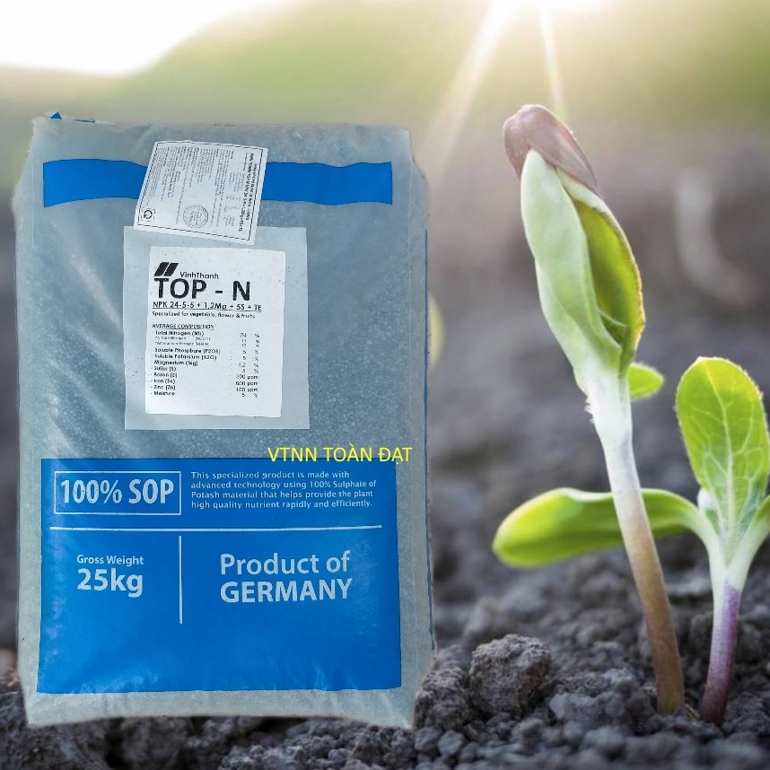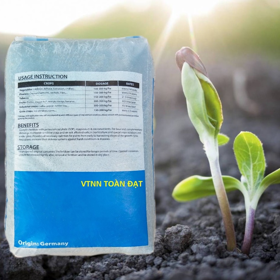 TOP-K nhập khẩu từ CHLB Đức là dòng phân bón NPK dạng hạt cao cấp nhất trên thị trường hiện nay, được sản xuất với 100% Kali Sulphat giúp cây hấp thu chất dinh dưỡng và phát triển 1 cách tốt nhất.