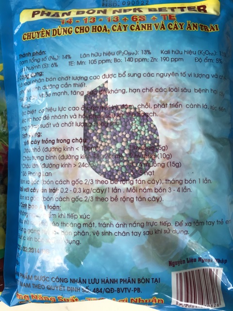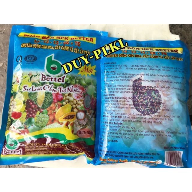 PHÂN BÓN NPK BETTER 14-13-13+6S+ TE TÚI 1KG CHUYÊN CHO HOA, CÂY CẢNH VÀ CÂY ĂN TRÁI