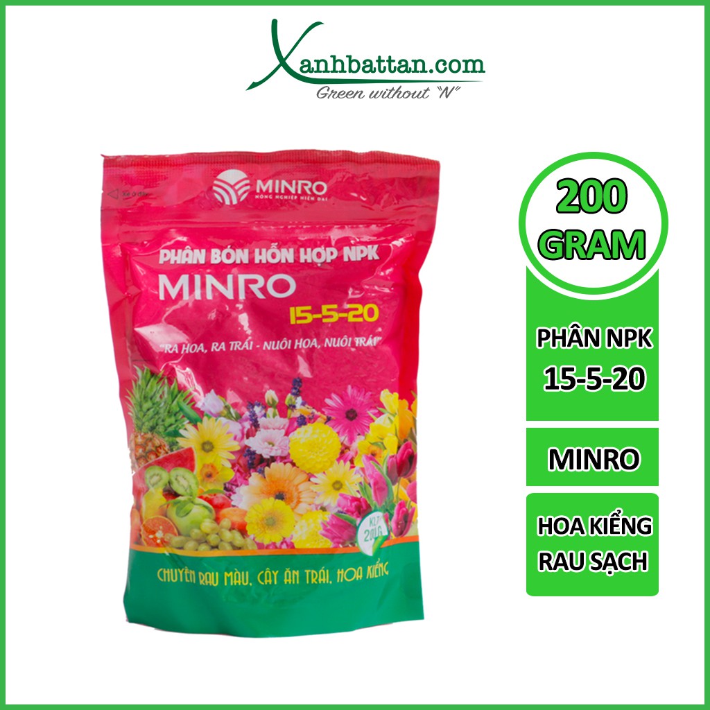 Nhà cửa & Đời sống > Làm vườn > Phân bón || Phân bón NPK Kích thích ra hoa và đậu quả MINRO 15-5-20 200 gramCòn hàng