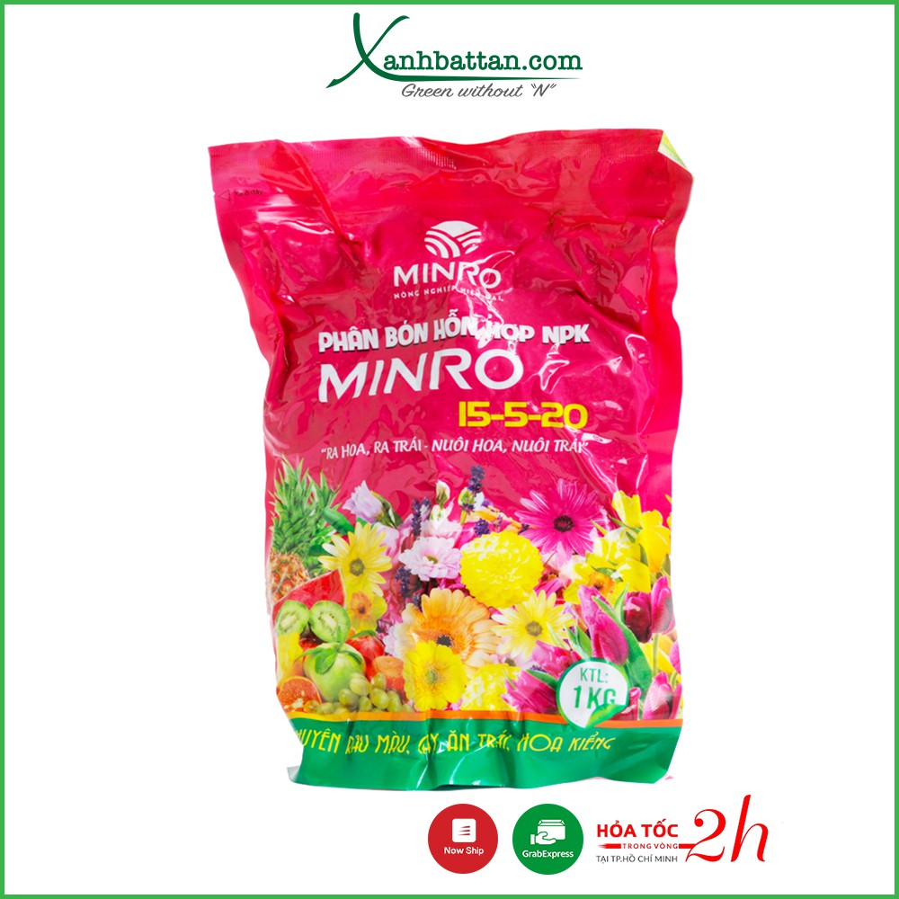 Giới thiệu Phân Bón NPK Minro 15-5-20 Kích Hoa - Dưỡng Trái Cho Hoa Kiểng Và Rau Sạch Túi 1 Kg
