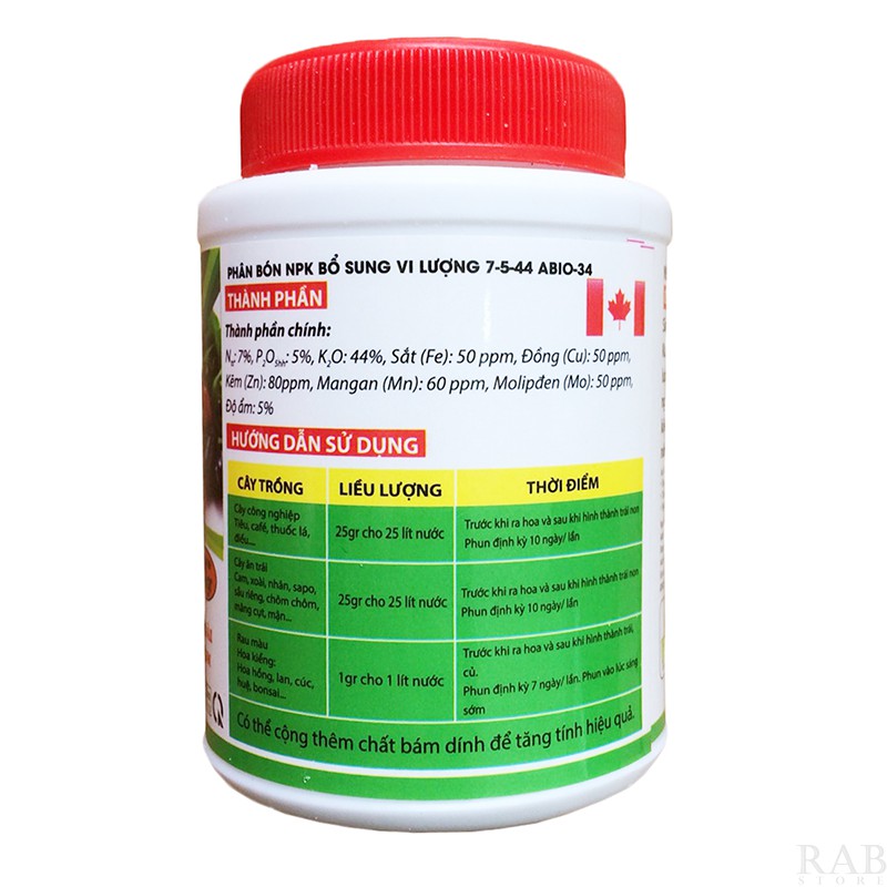 Phân bón npk siêu kali cho cây trồng, super kali cho hoa nỡ đồng loạt, bông to, lọ 100g - rabstore