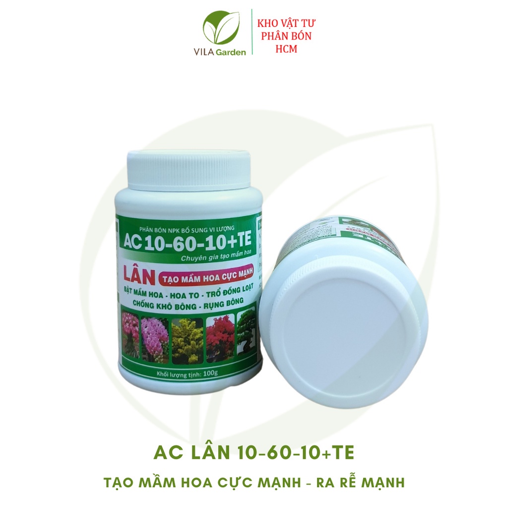 Nhà cửa & Đời sống > Làm vườn > Phân bón || Phân Bón NPK Vi Lượng Kích Hoa AC LÂN 10-60-10+TE Chuyên Gia Tạo Mầm Hoa hũ 100gCòn hàng