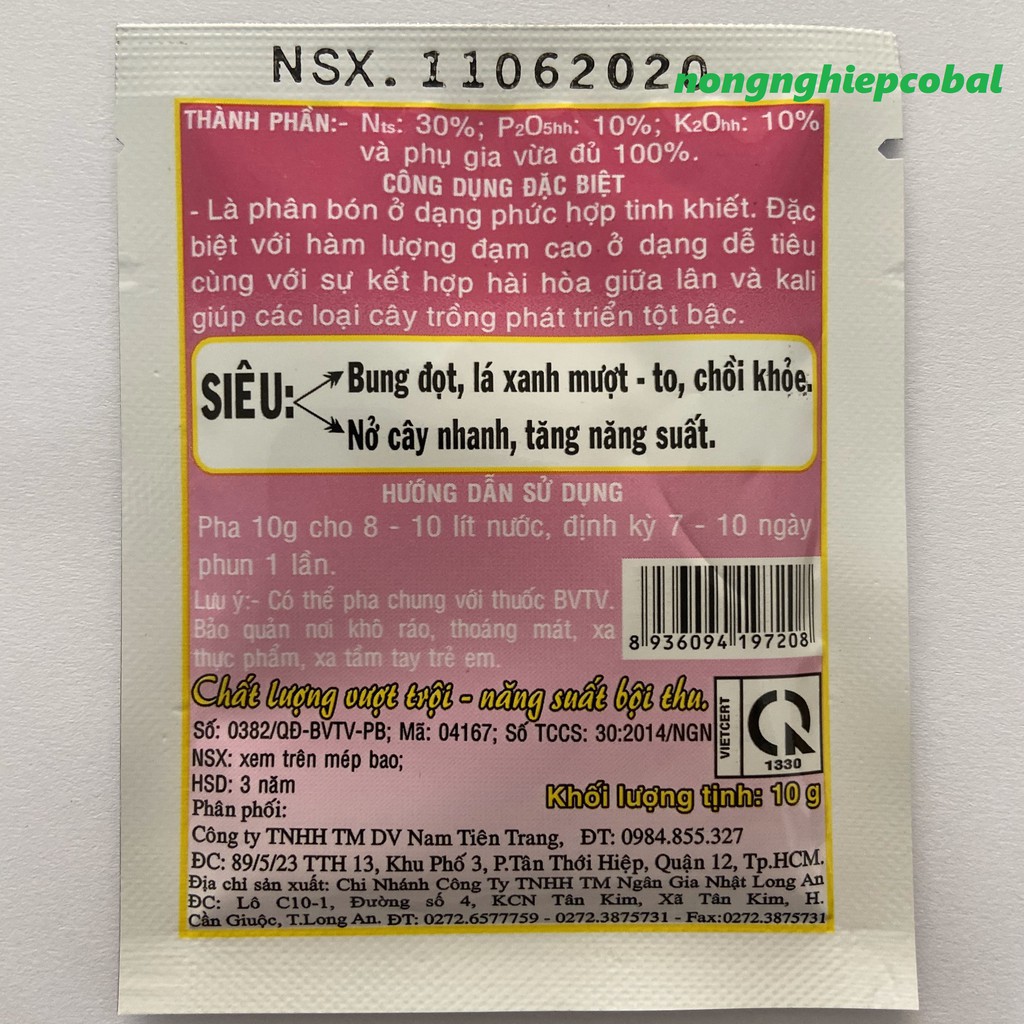 Sử dụng gói 10g cho bình từ 8-10 lít cho tất cả các loại cây trồng