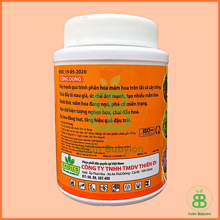 + Nguồn nguyên liệu bổ sung: Sử dụng nguồn phụ gia đặc biệt để kích ra hoa đồng loạt và tăng số lượng bông cho cây trồng (Brassinnolide 0.015%; Cytokynin, IBA) và các trung vi lượng vừa đủ 100%.