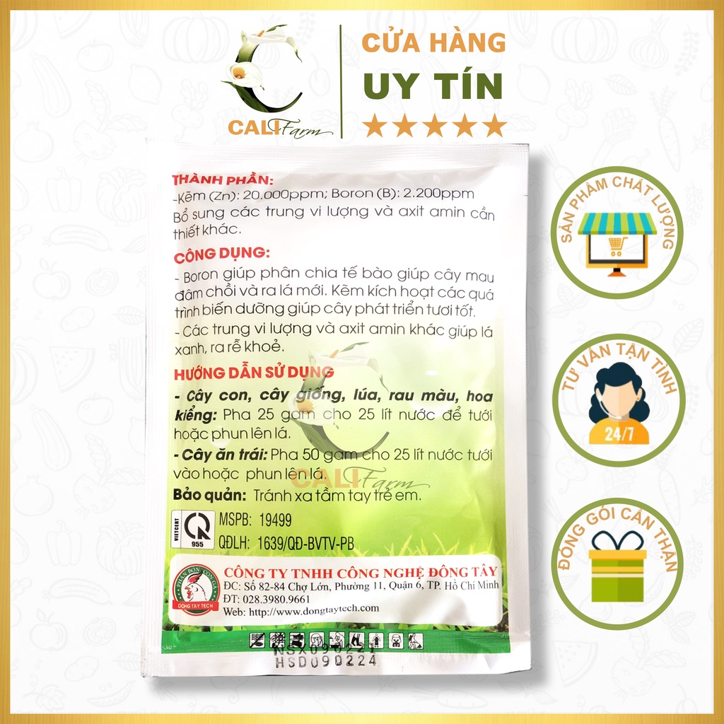 - Boron giúp phân chia tế bào giúp cây mau đâm chồi và ra lá mơi. Kẽm kích hoạt các quá trình biến dưỡng giúp cây phát triển tươi tốt