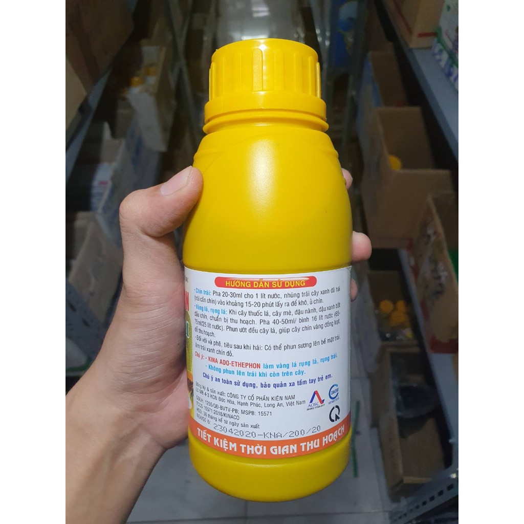 - Chín trái: Pha 20 – 30ml cho 1 lít nước, nhúng trái cây xanh đã hái (Trái cần làm chín) vào khoảng 15 – 20 phút lấy ra để khô, ủ chín.