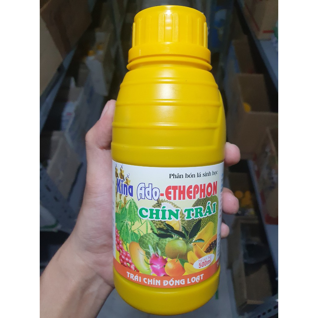 - Phân bón lá ADO ETHEPHON để thúc trái cây chín là phương pháp được nhiều nước sử dụng từ lâu. Đây là chất điều hòa tăng trưởng thực vật được dùng rộng rãi trên bông, lúa mì, cà phê, dứa, nho, táo và nhiều loại trái cây khác. Ethephon được xem như là hóc-môn “lão hóa” ở thực vật. Sau khi thấm qua lớp vỏ của trái cây, Ethephon sẽ bị phân giải thành Ethylene, từ đó, thúc đẩy quá trình chín nhanh ở trái cây.