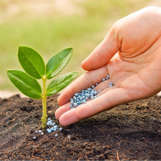 🌿 Rải các hạt phân dưới gốc cây tránh để đọng trên lá, sau đó tưới cây