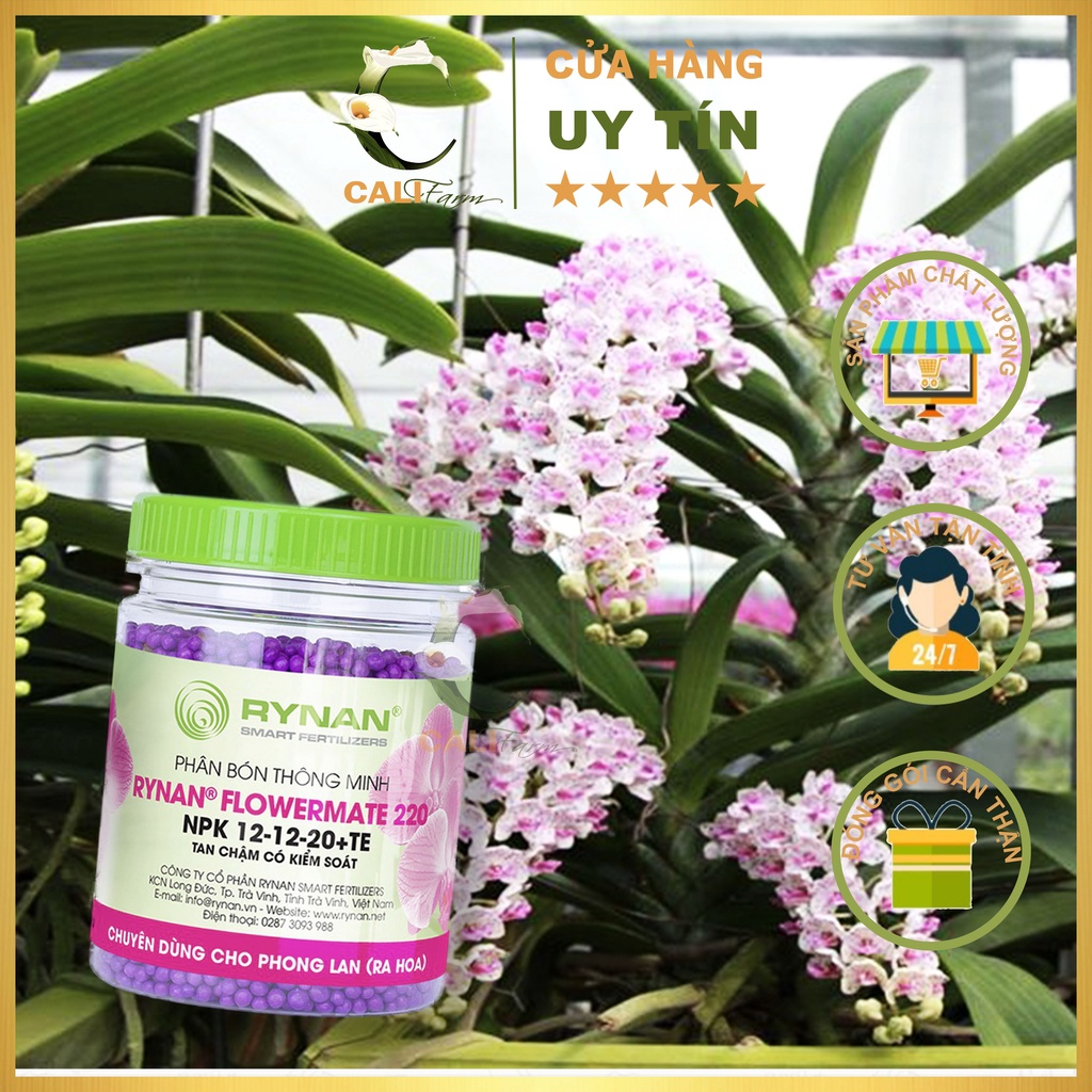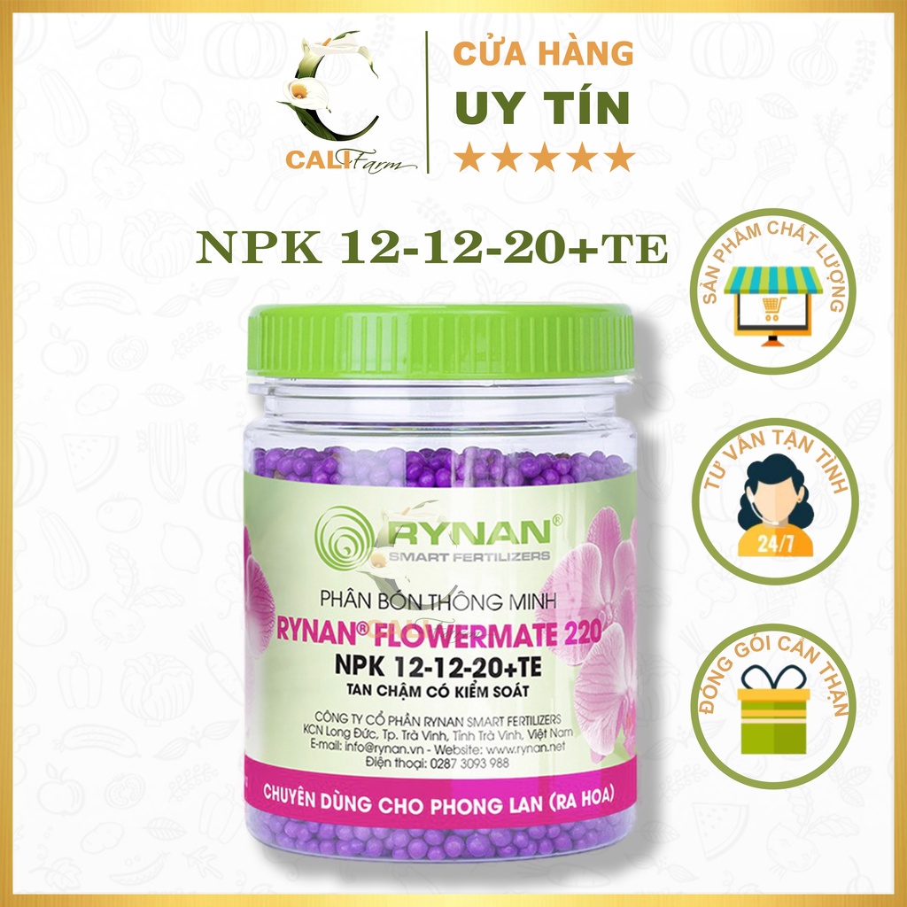 RYNAN® FLOWERMATE 220 là dòng sản phẩm phân bón thông minh tan chậm có kiểm soát chuyên dùng cho hoa phong lan. Cung cấp đầy đủ dưỡng chất cần thiết cho cây ở giai đoạn ngủ nghỉ và ra hoa. Giúp cây sinh trưởng khỏe mạnh, hạn chế nấm bệnh, kích thích trổ nụ, ra hoa đồng loạt, màu sắc rực rỡ và lâu tàn.👉 Thành phần: Ntt: 12%, P2O5hh: 12 %, K2Ohh: 20 %