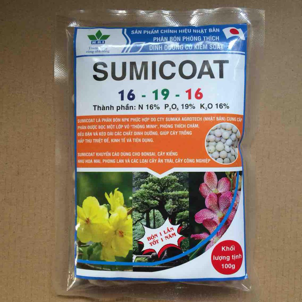 Giới thiệu Phân bón tan chậm thông minh Sumicoat 16-19-16 100gr chuen dùng cho phong lan, hoa mai, bonsai