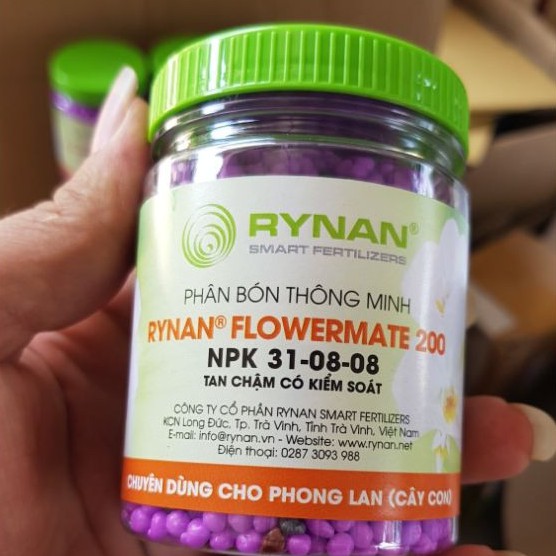 Phân bón RYNAN FM 200 là dòng phân bón thông minh, có khả năng tan chậm và cung cấp dinh dưỡng cho lan lên đến 120 ngày. Dòng phân bón này cung cấp dinh dưỡng cho lan, tăng sức đề kháng hạn chế nấm bệnh và giúp ra hoa đều và đồng loạt hơn.Thành phần chính: