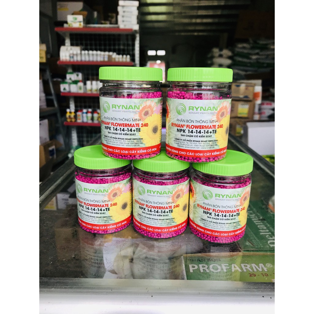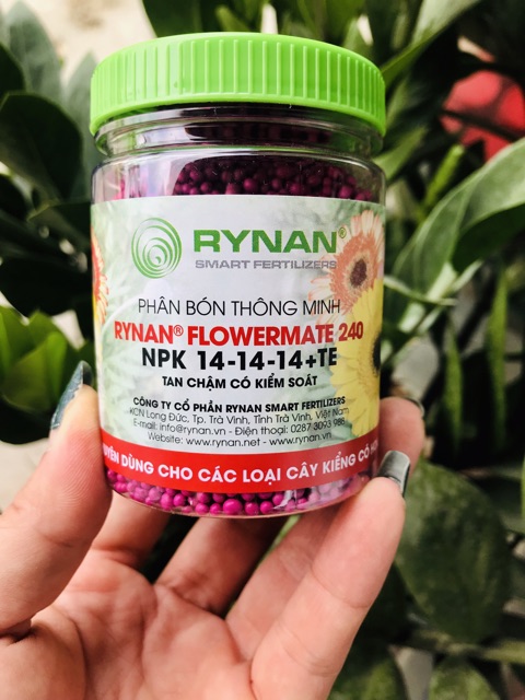 🔹 PHÂN BÓN THÔNG MINH DÙNG CHO HOA, CÂY KIỂNG, PHONG LAN• RYNAN® FLOWERMATE 240 là dòng sản phẩm phân bón thông minh tan chậm có kiểm soát chuyên dùng cho hoa, cây kiểng và phong lan. NPK 14-14-14+TE (Zn, B) dưỡng cây, phát triển toàn diện thân cành rễ lá cho giai đoạn trưởng thành và chuẩn bị ra hoa.