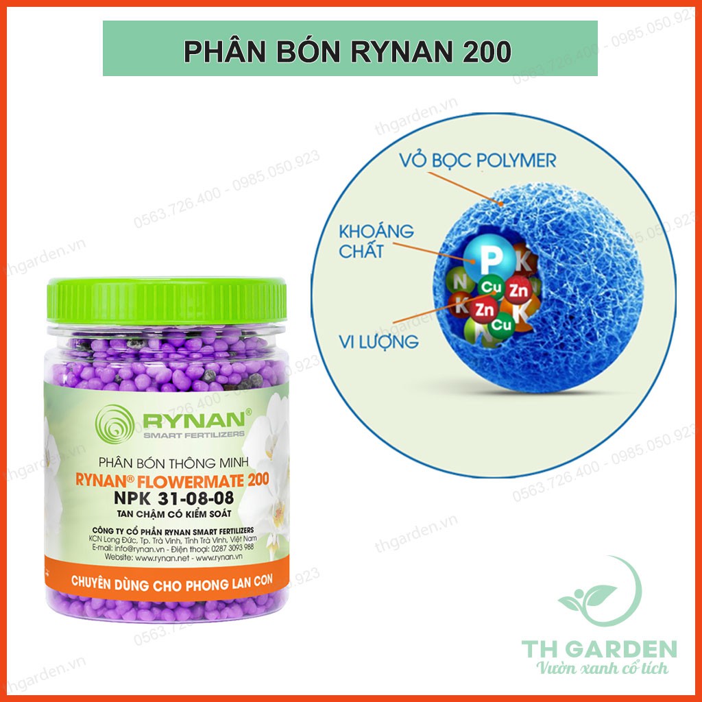 Phân Bón Thông Minh Rynan 200 - Chuyên Cho Phong Lan Con - Màng Polyme Kiểm Soát Giải Phóng Phân Từ Từ