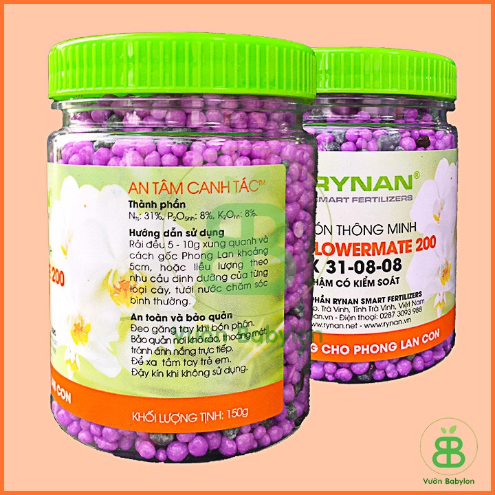 RYNAN® FLOWERMATE 200 là dòng sản phẩm phân bón thông minh tan chậm có kiểm soát chuyên dùng cho hoa phong lan. Cung cấp đầy đủ dưỡng chất cần thiết ở giai đoạn cây con, thời gian cung cấp dưỡng chất lên đến 120 ngày. Giúp cây sinh trưởng khỏe mạnh, tăng sức đề kháng, hạn chế nấm bệnh, kích thích mọc mầm, phát triển thân lá.