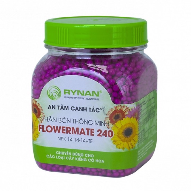là phân bón thông minh tan chậm có kiểm soát chuyên dùng cho trồng hoa dùng giai đoạn mọc mầm và trưởng thàn. Rãi đều hạt phân RYNAN® FLOWERMATE 240 xung quanh và cách gốc cây hoa Phong Lan khoảng 5 cm với liều lượng 5-10g/gốc, hoặc theo nhu cầu dinh dưỡng của từng loại cây sau đó tưới nước.