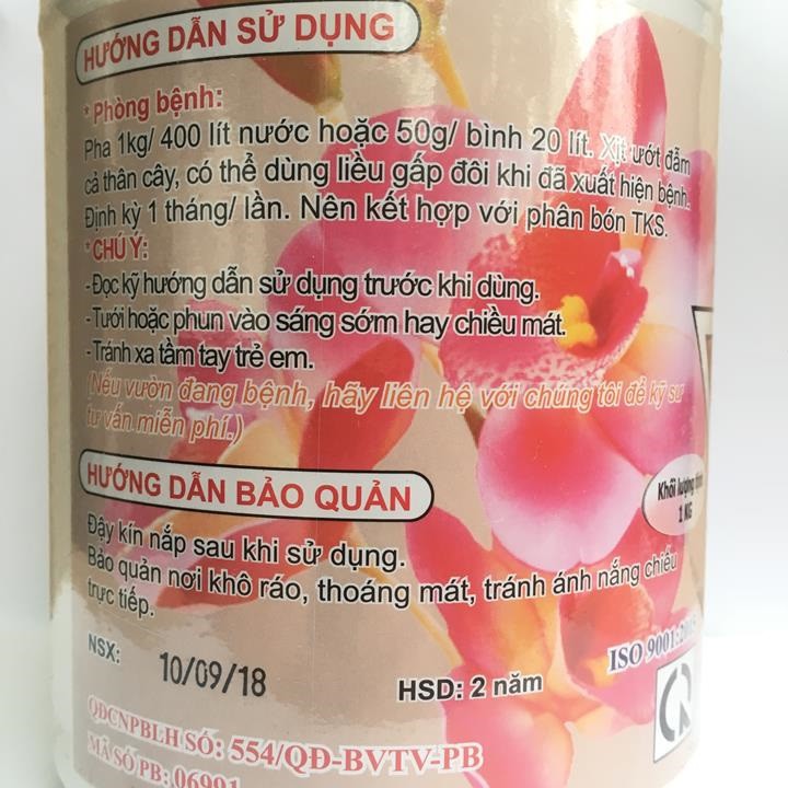 Phòng bệnh: Pha 1kg/400 lít nước hoặc 50g/1 bình 20 lít. Xịt ướt đẫm cả thân cây. Có thể dùng liều gấp đôi khi đã xuất hiện nhiễm bệnh. Định kỳ 1 tháng 1 lần.