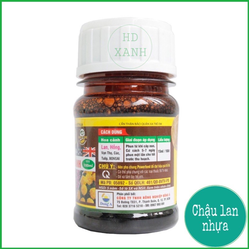 Đối với các loại Hoa lan,Hoa hồng, Hoa lài, Cúc, Huệ, Vạn thọ, Tuy líp, Cẩm chướng, Cây cảnh: pha tỉ lệ 30ml cho 16 lít nước sạch, phun trên thân lá, sửu dụng định kỳ 7-10 ngày 1 lần.