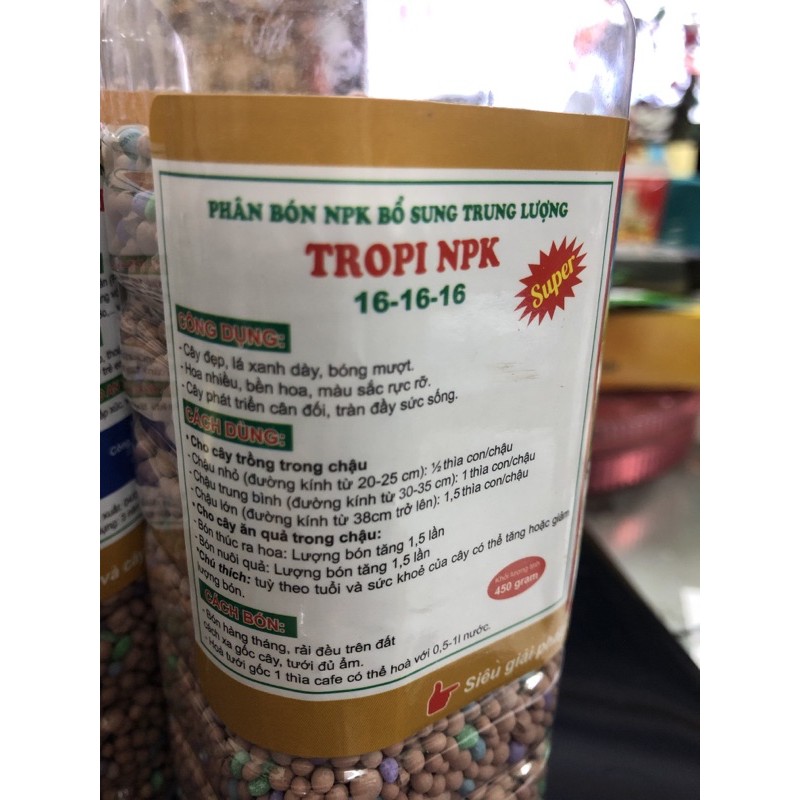 ✅ Phân bón NPK 16-16-16 bổ sung trung lượng Tropi - NPK (Khối lượng tịnh 450 gr) 🌿❤ Sản phẩm đặc hiệu cho hoa và cây cảnh 🍀