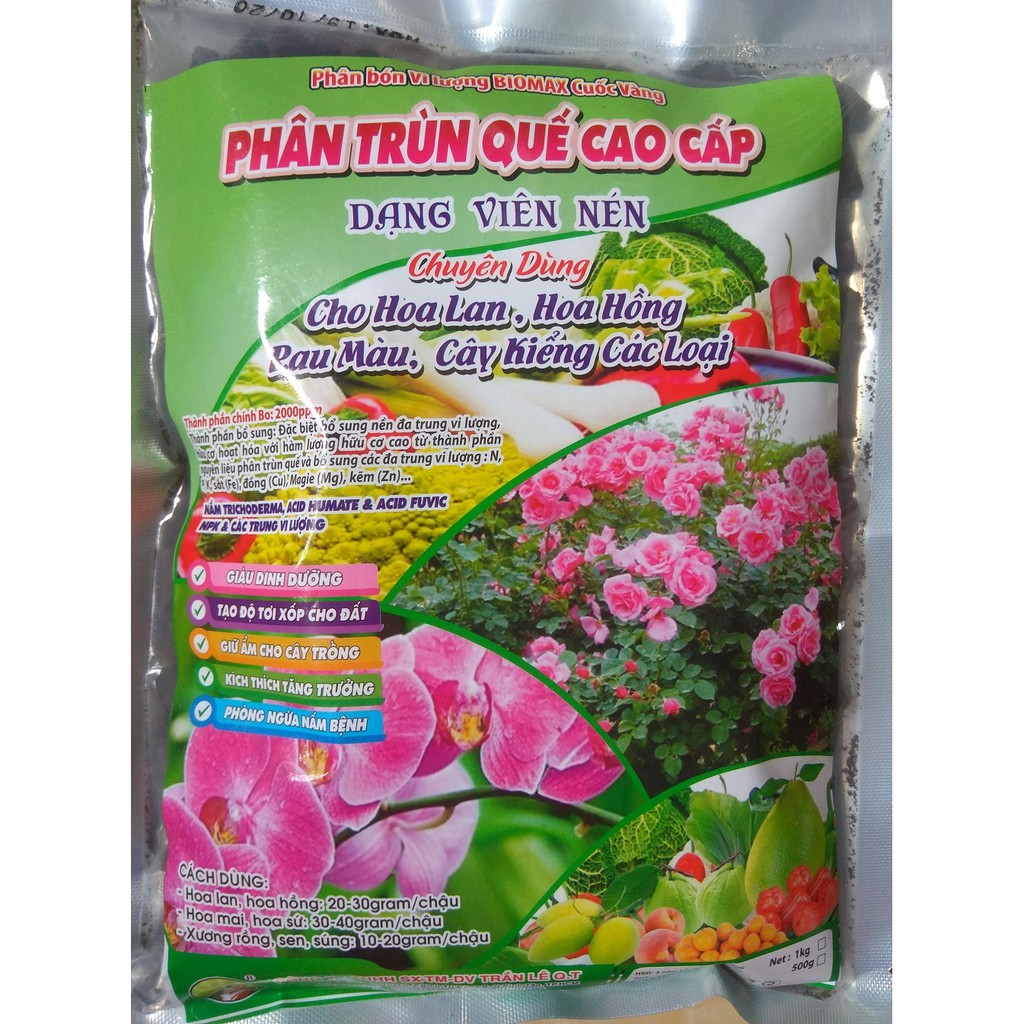 PHÂN BÓN VI LƯỢNG TRÙN QUẾ CAO CẤP - GÓI 1 KGCHUYÊN DÙNG CHO HOA LAN, HOA HỒNG, RAU MÀU, CÂY KIỂNG