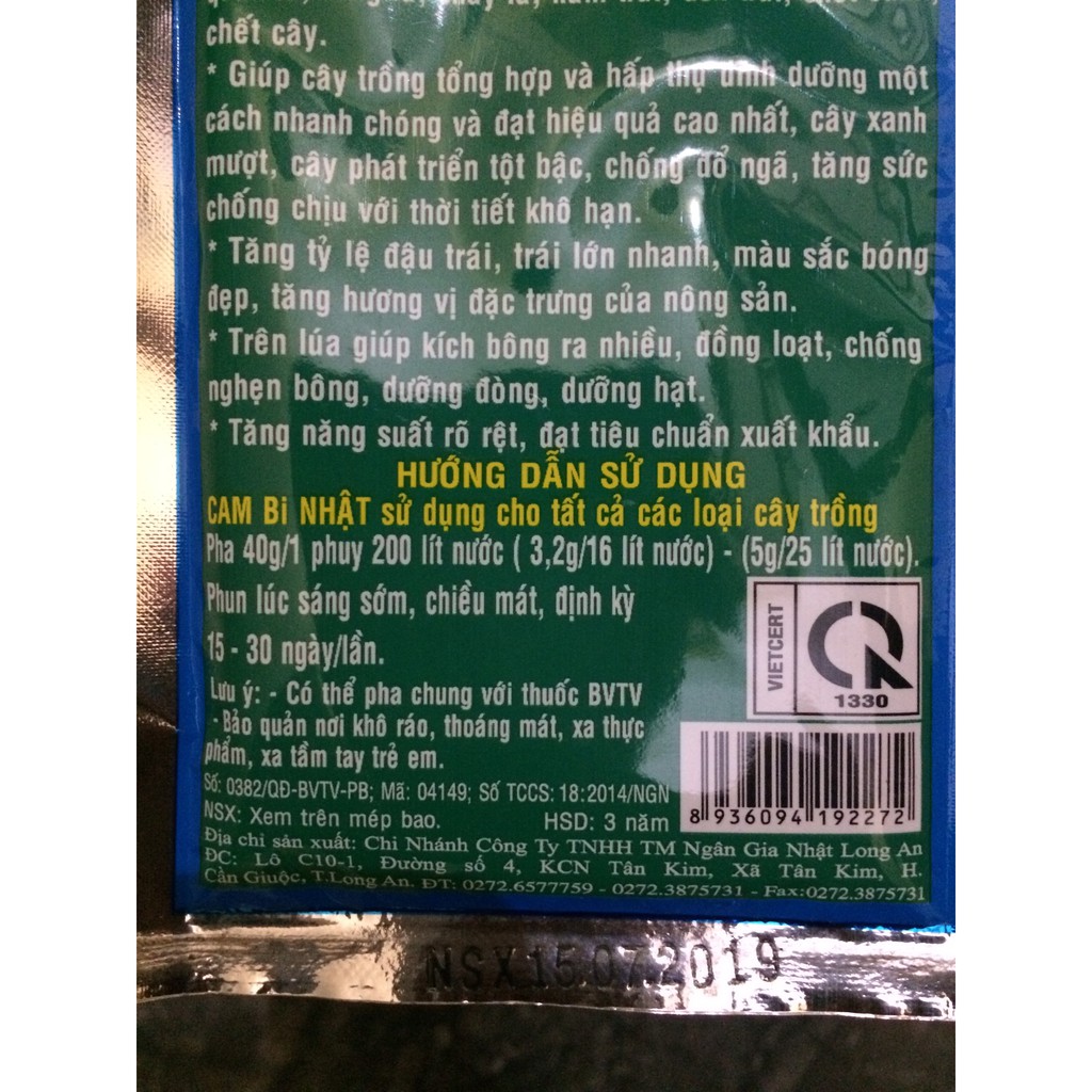 ****Hướng dẫn sử dụng: Pha gói 40g/ 200L nước Phun lúc sáng sớm hoặc chiều mát định kỳ 15-30 ngày/1 lần.