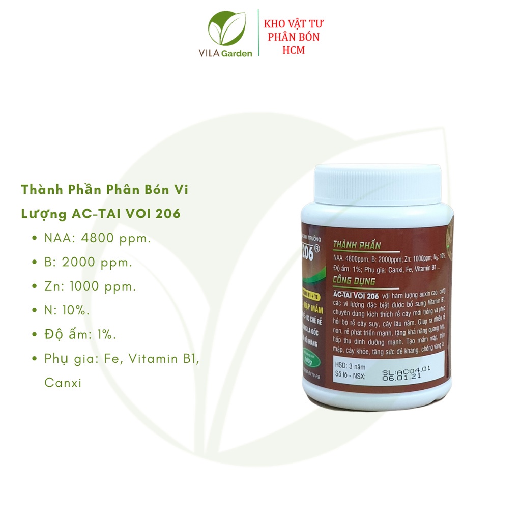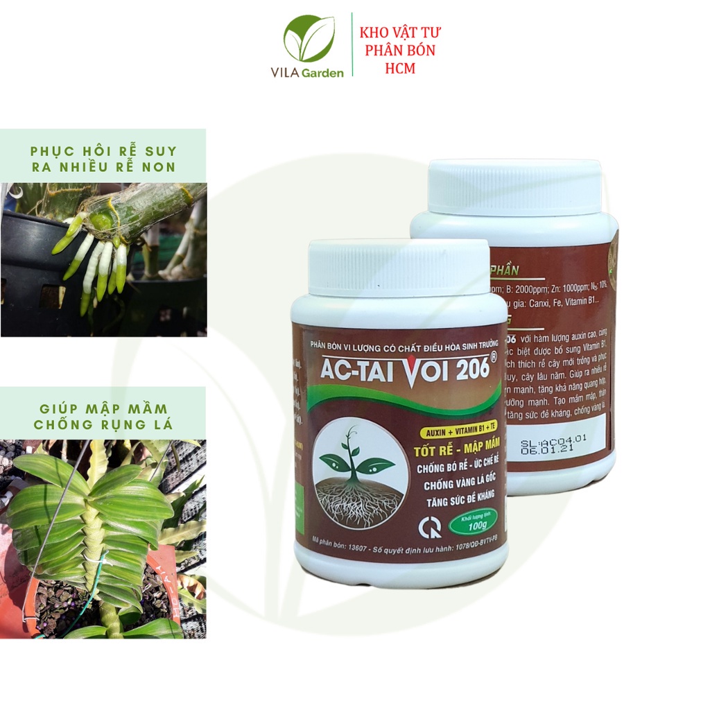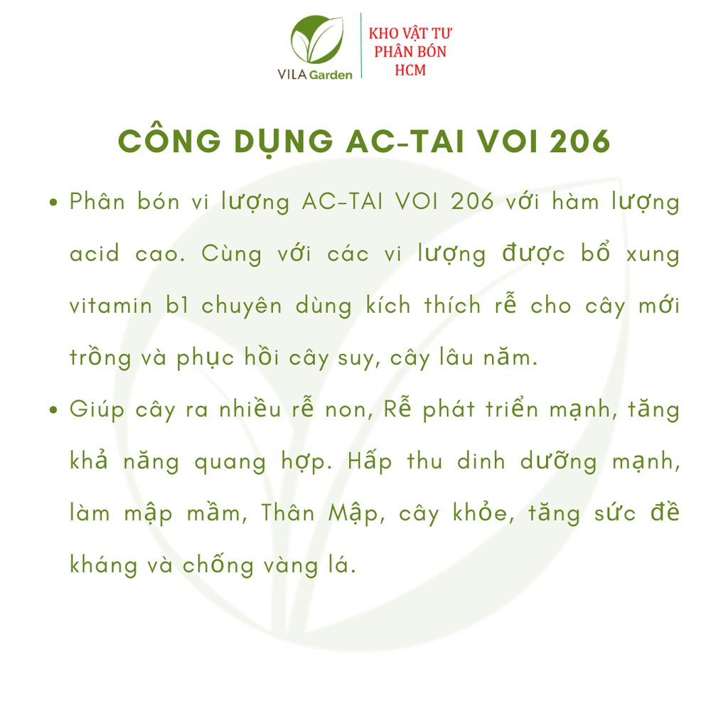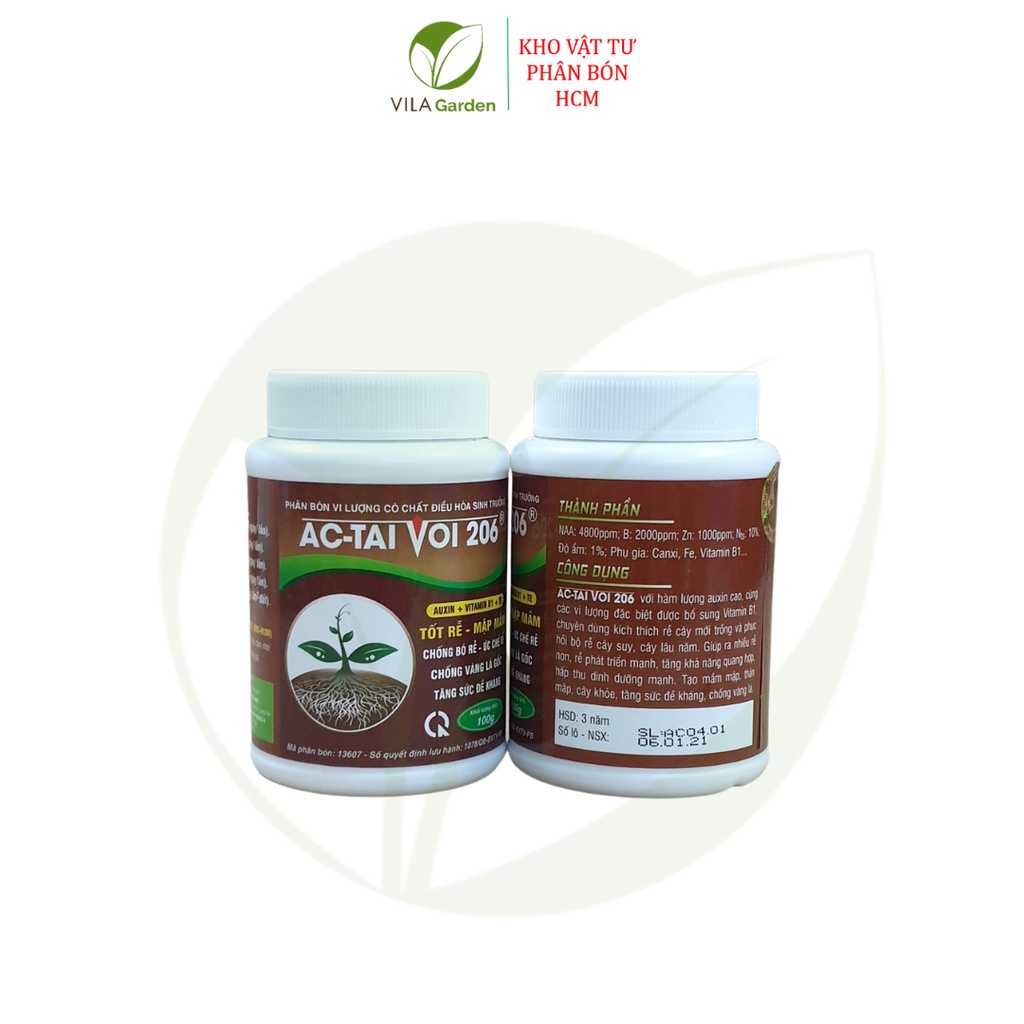 Giới thiệu Phân Bón Vi Lượng Có Chất Điều Hoà Sinh Trưởng AC-TAI VOI 206 Tốt Rễ Mập Mầm hũ 100g
