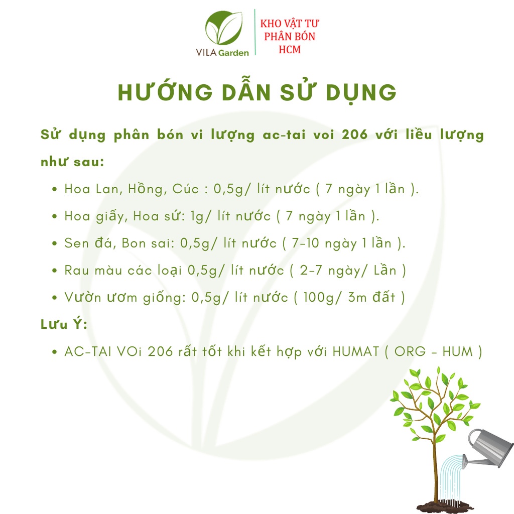 🌿🌿PHÂN BÓN VI LƯỢNG CÓ CHẤT ĐIỀU HOÀ SINH TRƯỞNG AC-TAI VOI 206Tốt Rễ - Mập Mầm