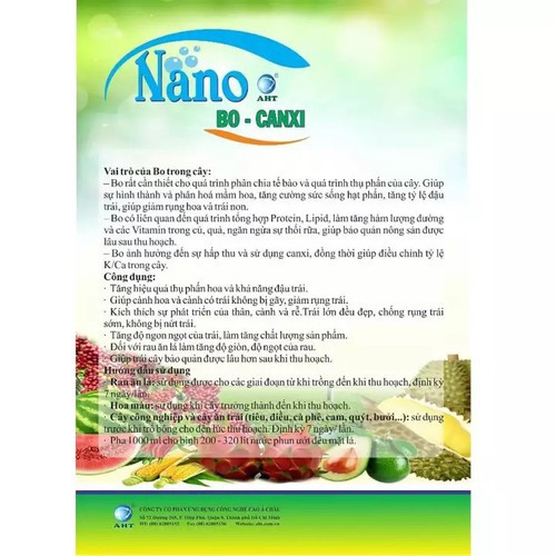 Giới thiệu Phân bón vi lượng Nano Bo-Canxi AHT 1000ml