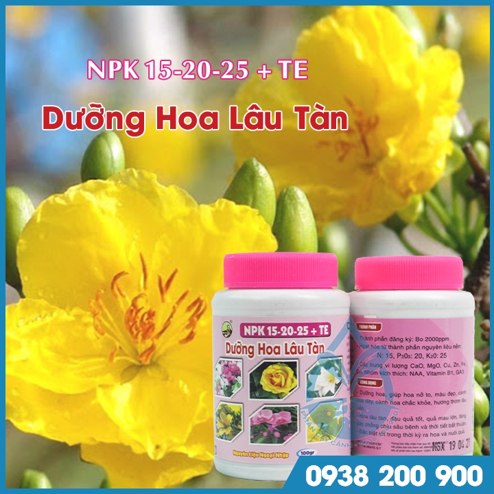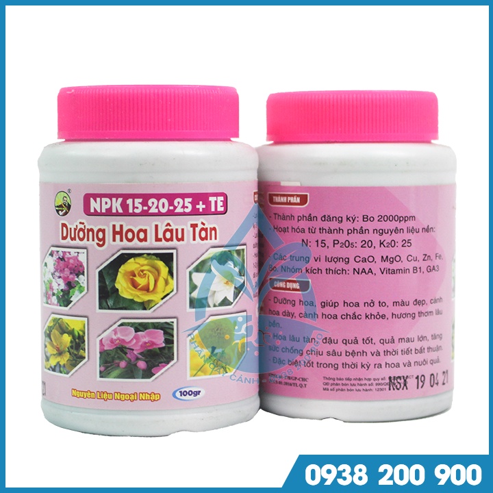 Giới thiệu Phân bón vi lượng NPK 15-20-25 + TE chai 100g - Dưỡng hoa lâu tàn - Chuyên dùng cho hoa hồng, hoa lan, hoa kiểng, bonsai