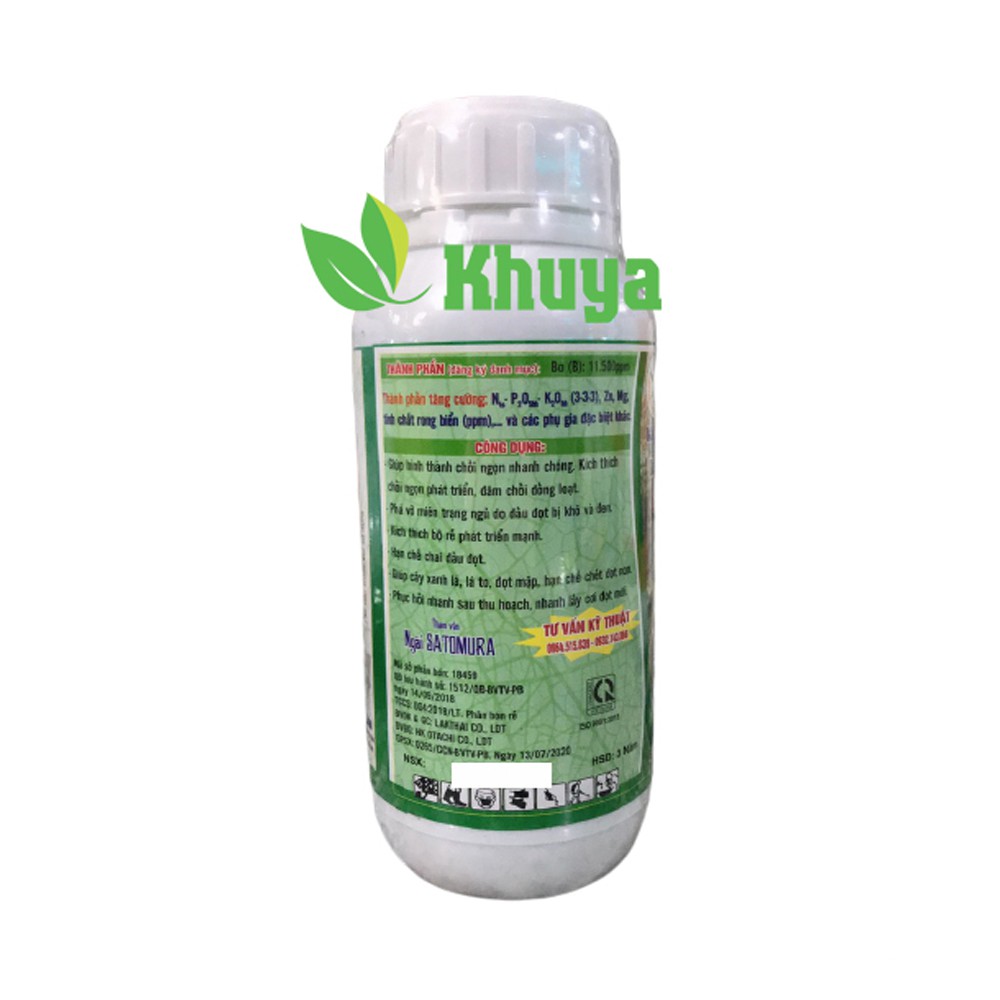 Thành phần tăng cường: Nts- P2Ohh- K2Ohh(3-3-3), Zn, Mg, tinh chất rong biển(ppm),... và các phụ gia đặc biệt khác.